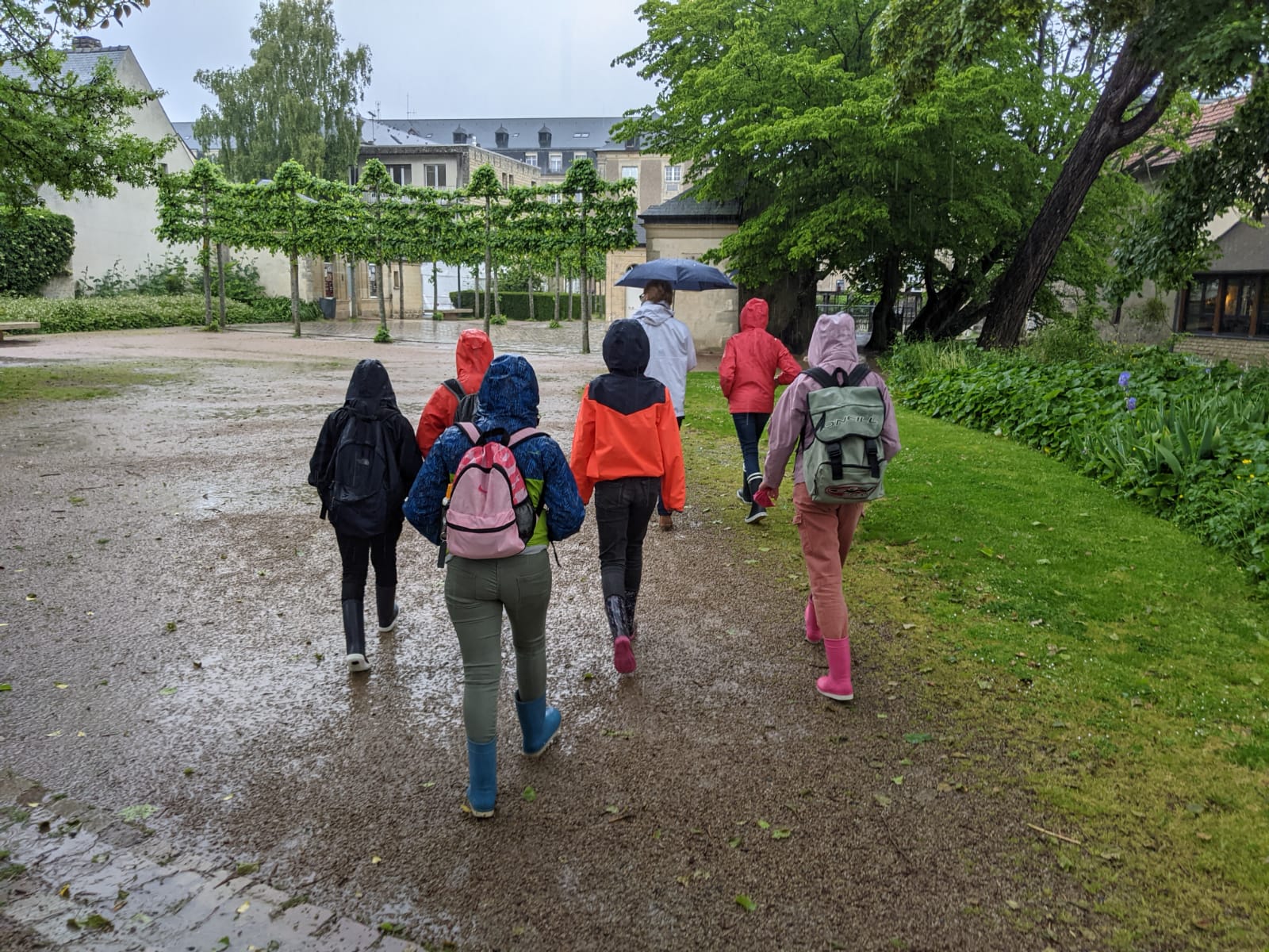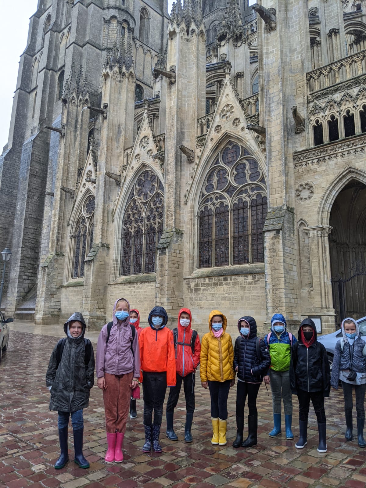 Première étape de la journée, enfiler nos bottes et nos cirés et direction la cathédrale de Bayeux. Nous y observons sa construction puisqu'elle a mis 8 siècles à être achevée, mêlant style roman et style gothique.