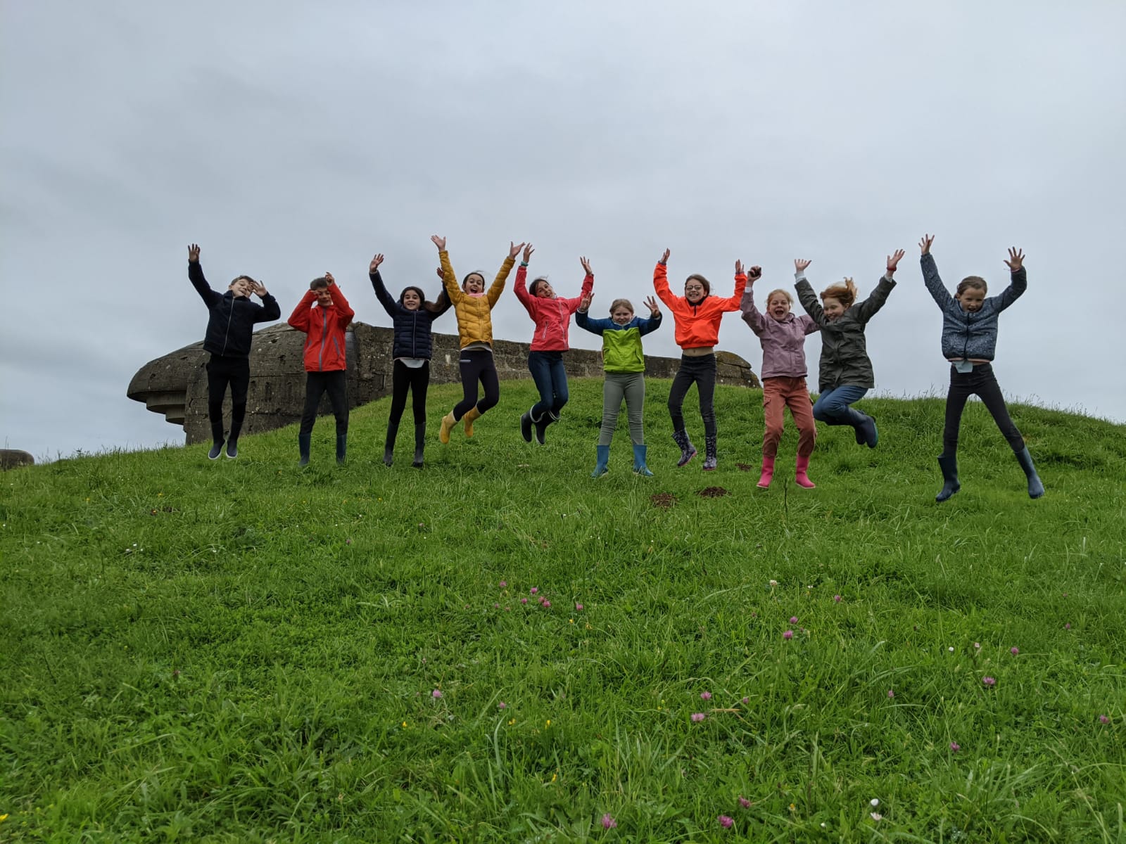 Le séjour touche bientôt à sa fin, nous reprenons le bus pour un dernier arrêt à la batterie de Longue-sur-Mer, 4 bunkers où 4 canons sont encore présents. Comme la commémoration du débarquement en Normandie approche, nous avons la chance de rencontrer des allemands venus avec leurs véhicules d'époque. Ils nous proposent même de monter dedans! Danke Shön! Nous prenons quelques photos de groupe pour immortaliser les derniers instants.