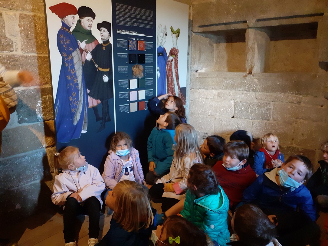 L'après-midi, nous avons visité le château de Dinan. Nous avons découvert les cuisines, le monte-plat, le reste du pont-levis et les assomoirs, la chambre de parlement et ses coussièges, et le "dressing" du Duc. Nous n'avons pas pu voir sa chambre.