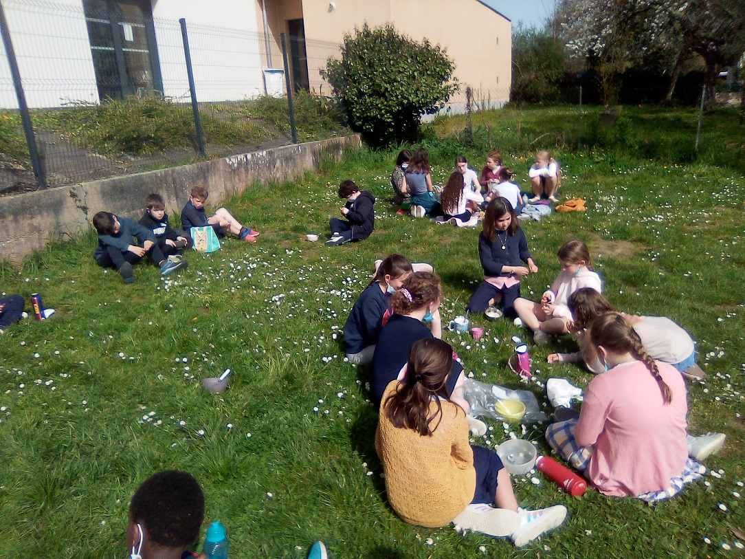 Cela s’est bien passé sous un beau soleil. Les élèves avaient du plaisir à être ensemble et à manger dehors.