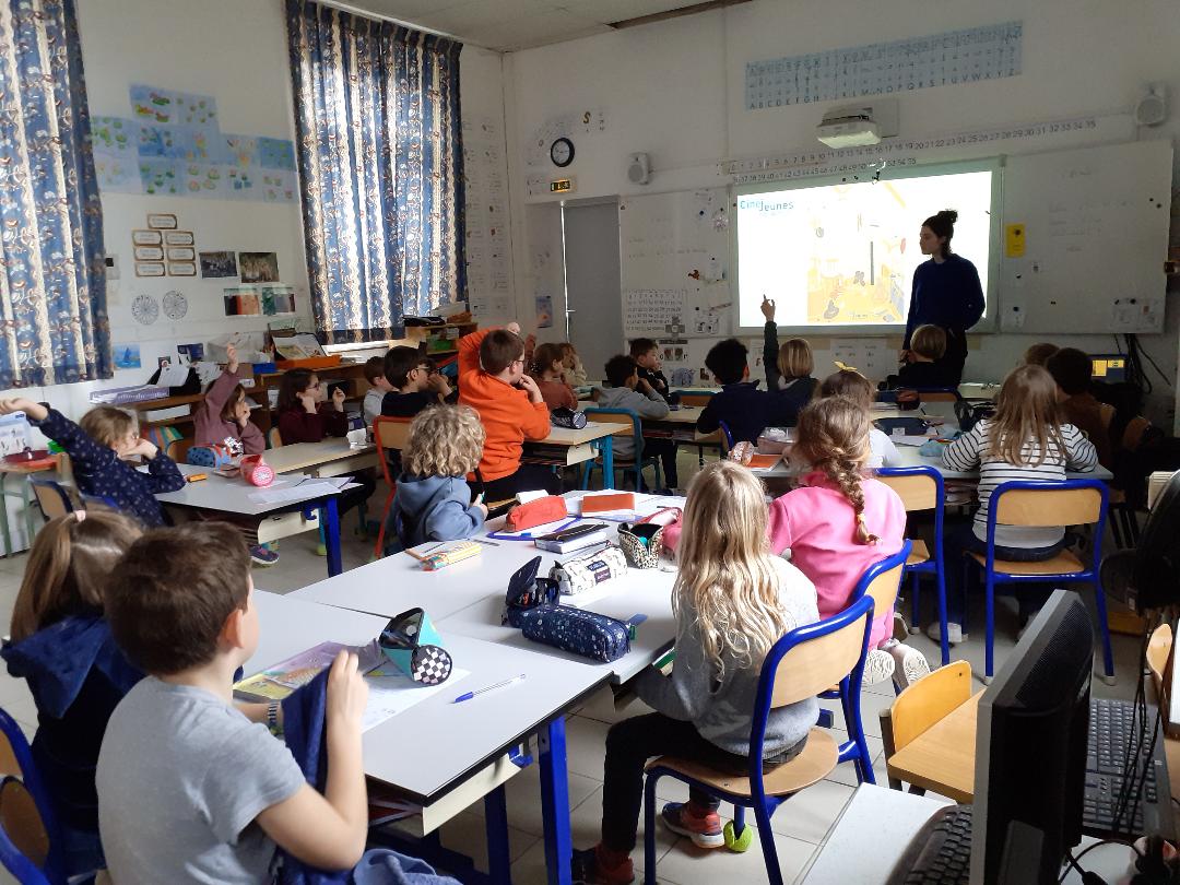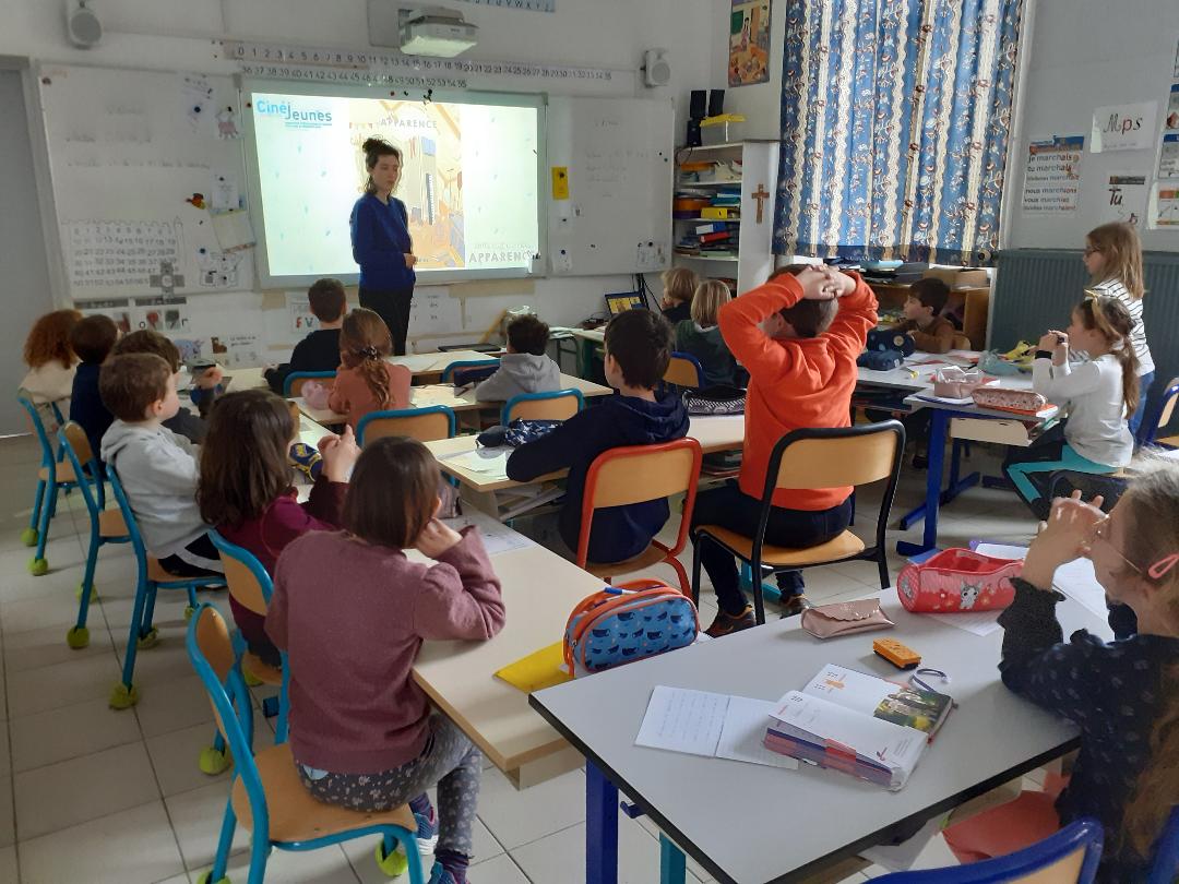 Aujourd'hui, les élèves de Cp au Cm2 ont suivi l'animation de l'association Ciné jeunes.