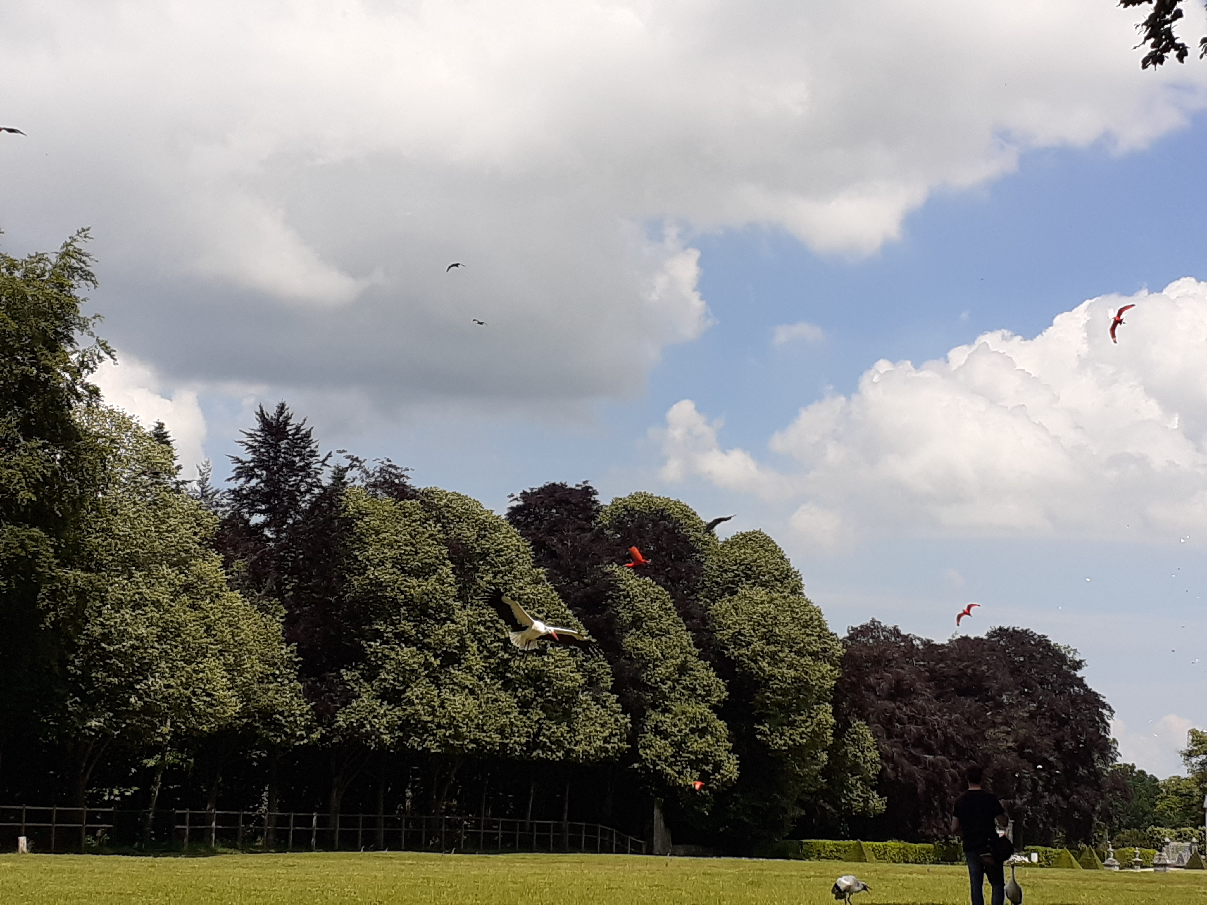 A 14h30, nous avons pris place à l'ombre des arbres pour assister au spectacle des oiseaux : rapaces, perroquets, ibis, cigognes... de l'avis de tous, c'était magique !