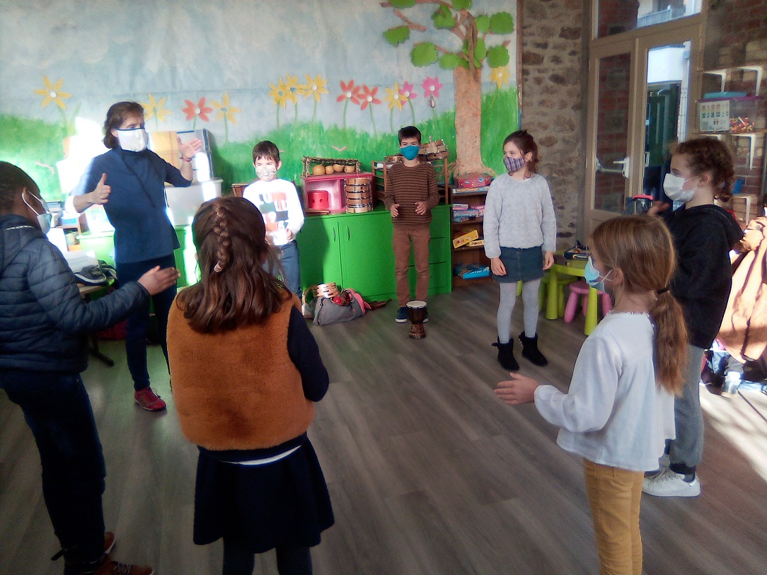 Ils travaillent aussi la coopération et le vivre ensemble dans la réalisation de morceaux de musique et danse où ils doivent être à l'unisson.