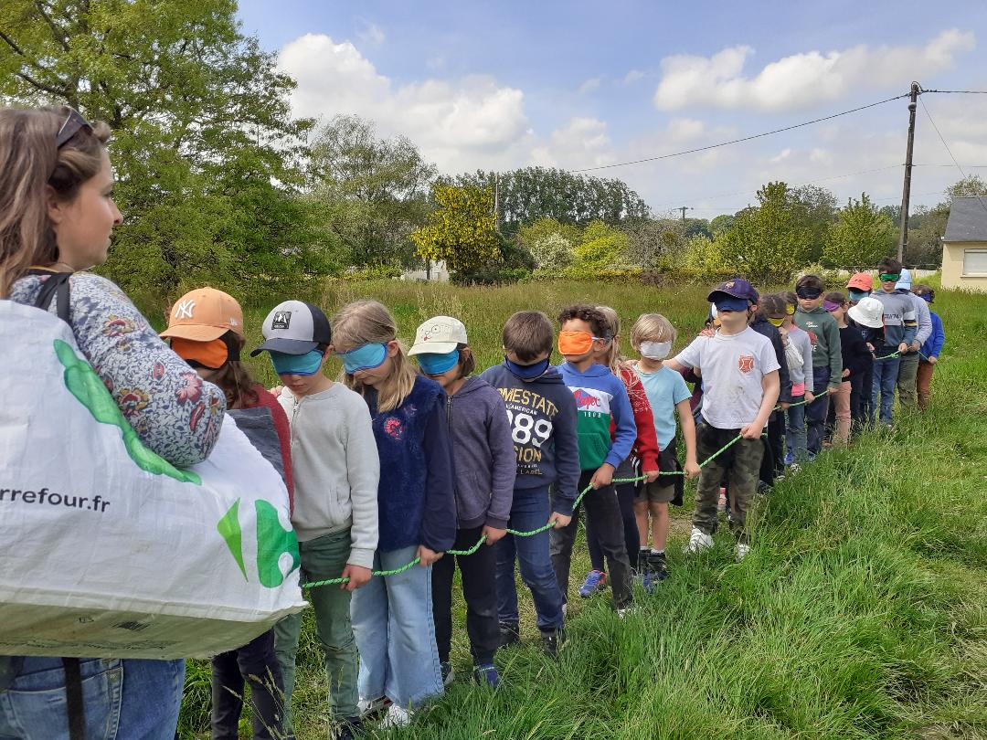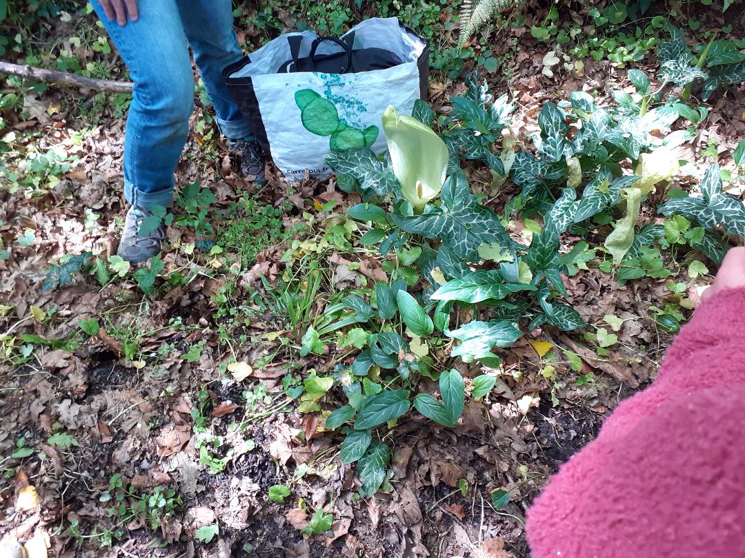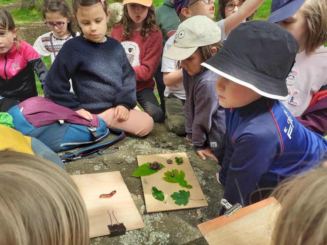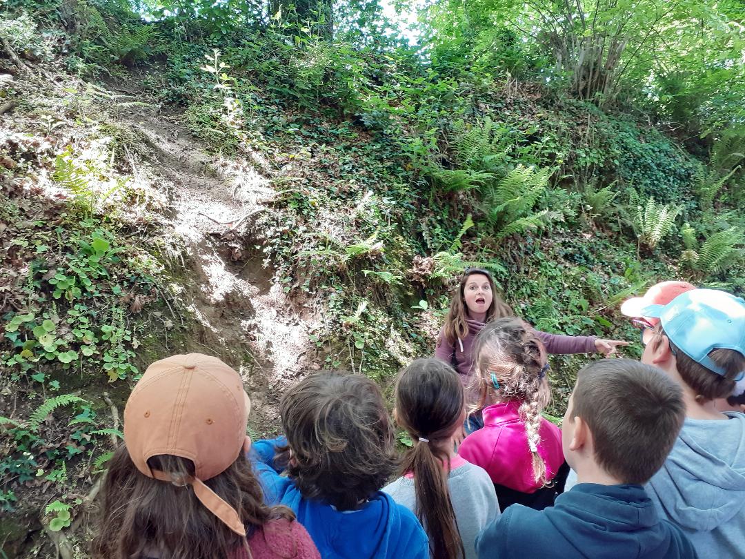 Ensuite, nous avons emprunté une chemin boisé où nous avons découvert des plantes (dont une très toxique) et des insectes. Certains élèves ont une très bonne vue ! Nous avons également remarqué des coulées d'animaux, sûrement un passage de sanglier ou de blaireau.