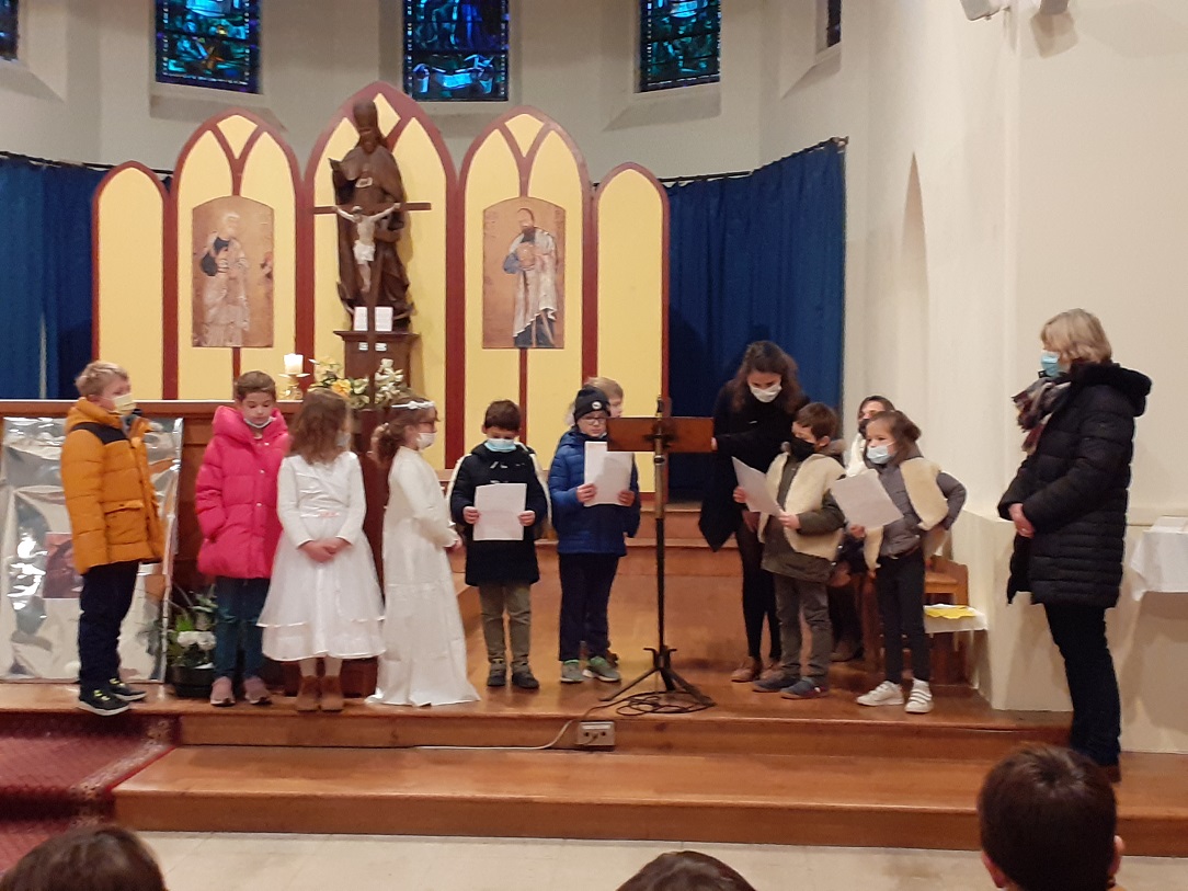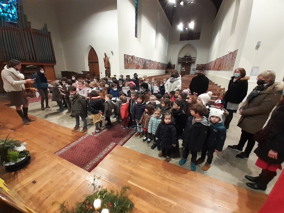 Les élèves de maternelle de CP/CE1 et de CE1CE2 ont participé activement à une célébration pour annoncer la bonne nouvelle : la naissance de Jesus à NOEL.