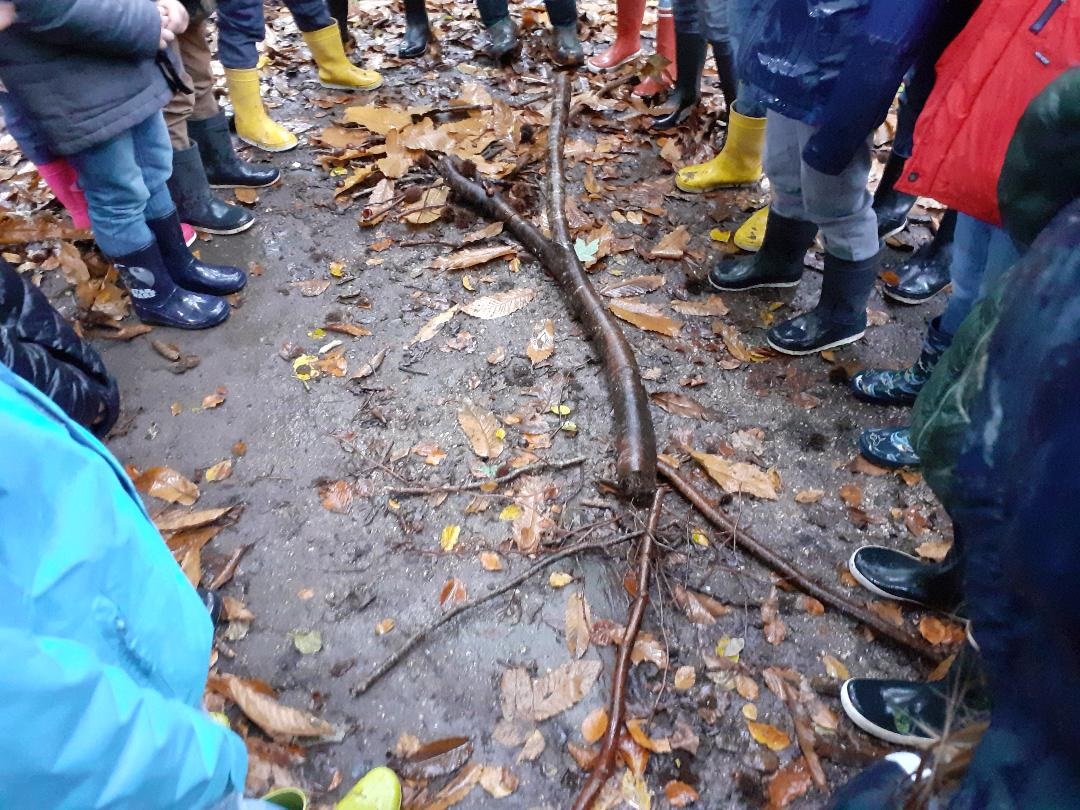 Ensuite, nous sommes arrivés dans le bois et nous avons fabriqué une maquette de châtaignier avec ce que nous trouvions dans la forêt. C'est l'équipe de Clara, Paul, Louis et Martin qui a réalisé la plus belle maquette.