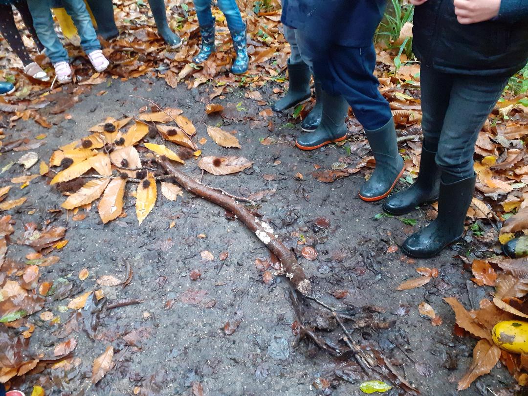 Après, nous avons cherché Mr Bout de Bois qui se cachait sous les feuilles.