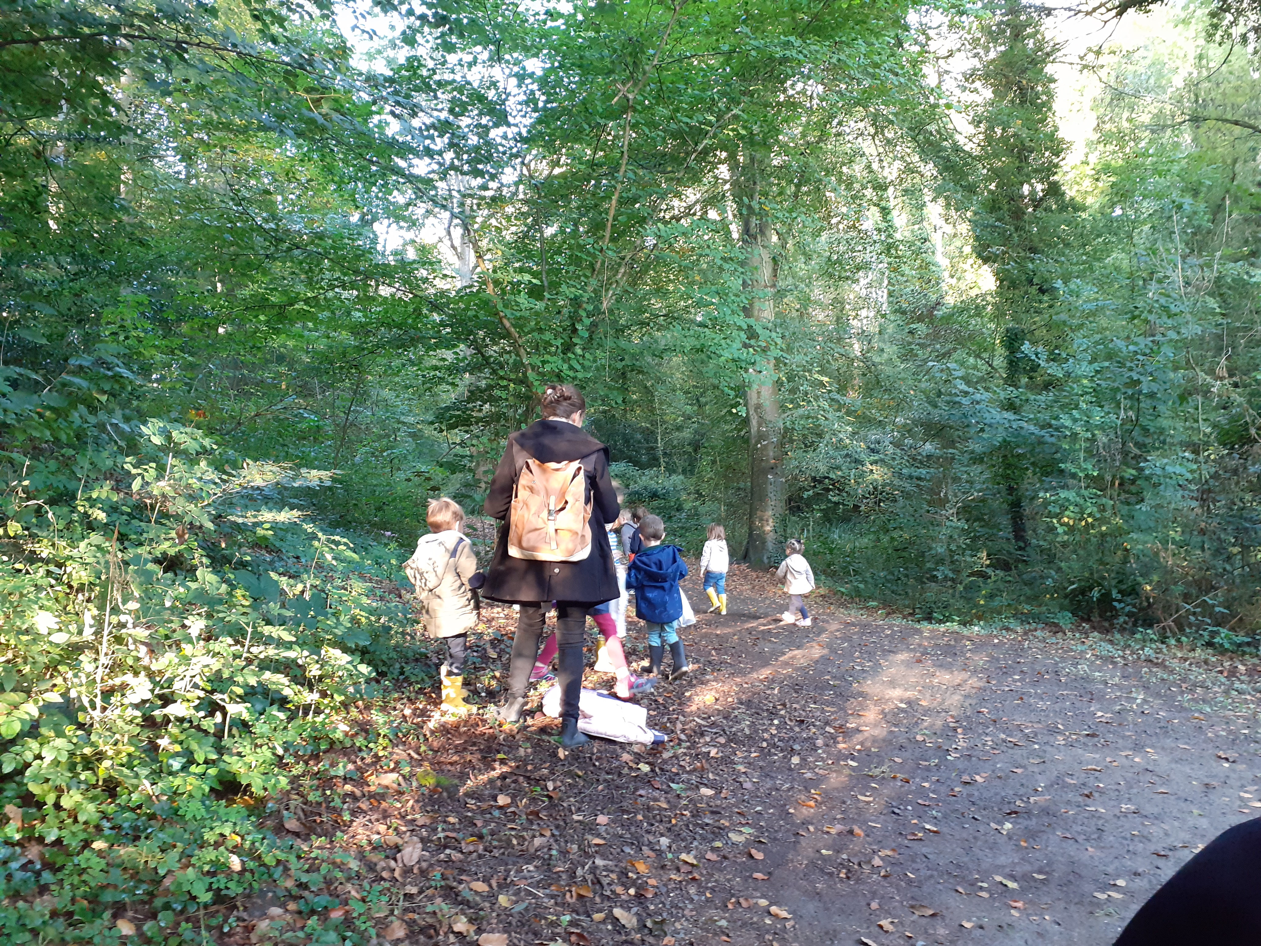 Nous avons pu, tout en nous promenant, observer les arbres, toucher leur écorce ou leurs feuilles, caresser du lierre ou de la mousse, écouter les oiseaux...