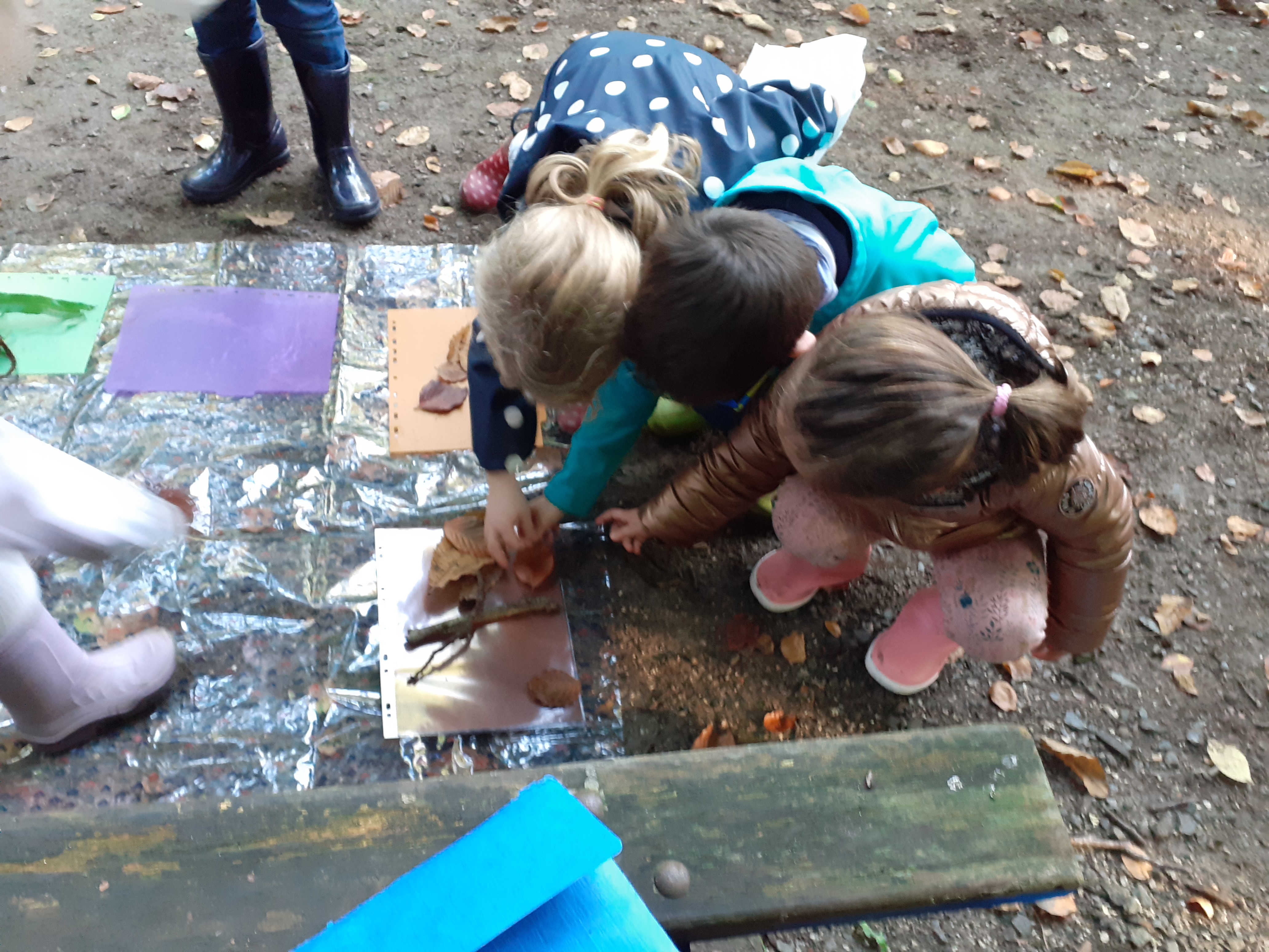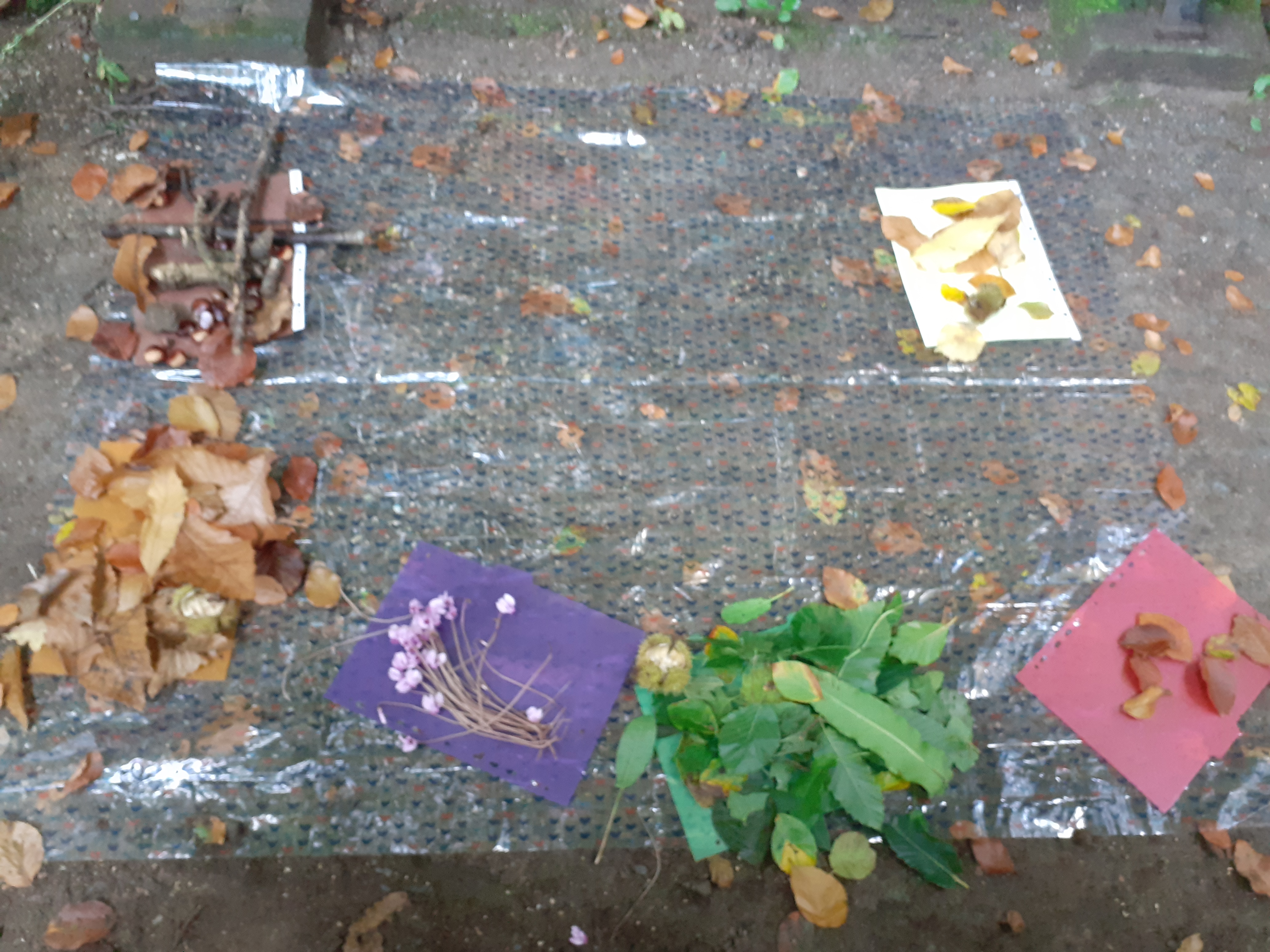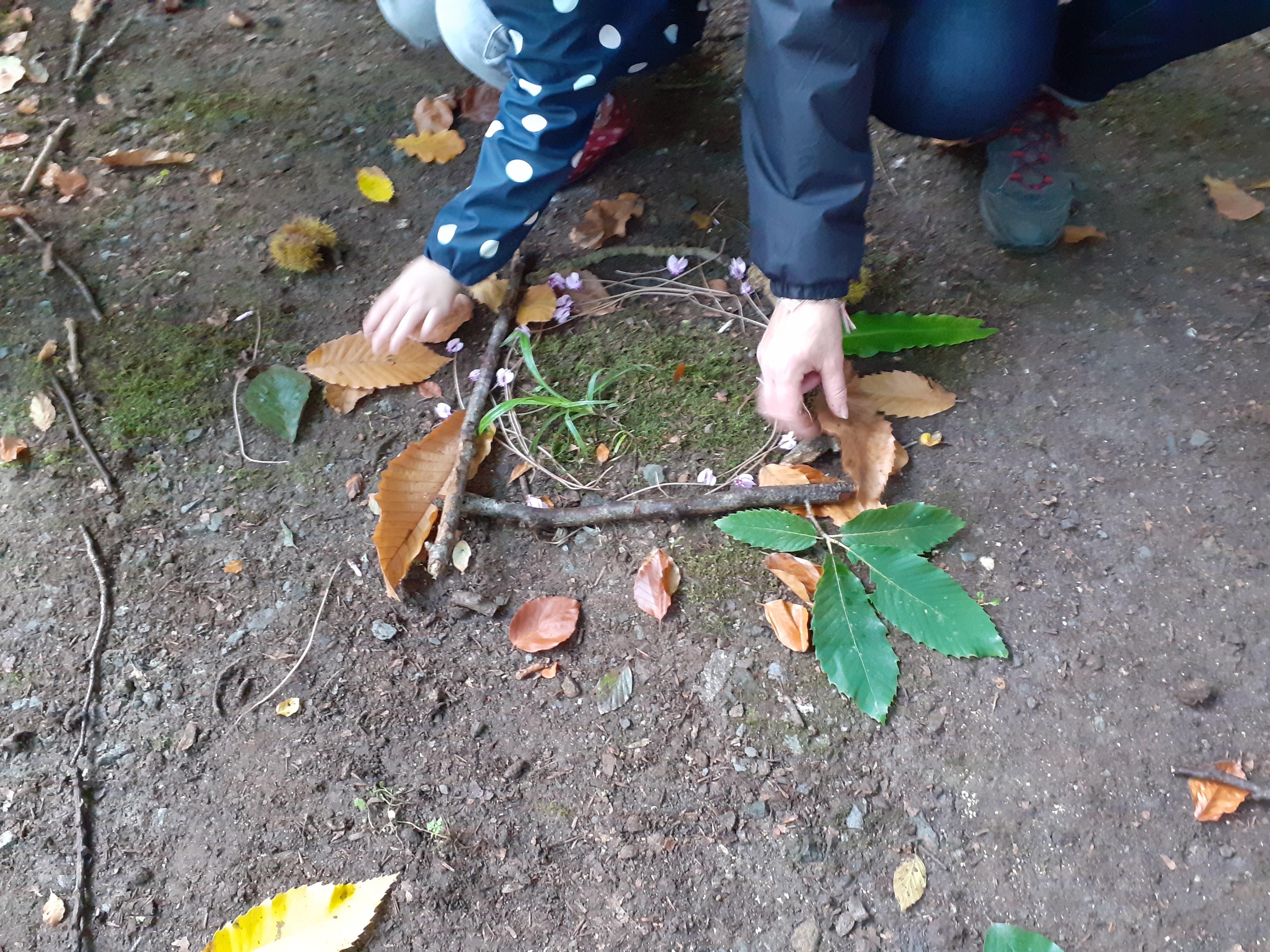 Nous avons ensuite mis à profit les belles couleurs automnales du bois pour réaliser une chasse aux couleurs, avant de conclure cette belle sortie par une séance de land art.