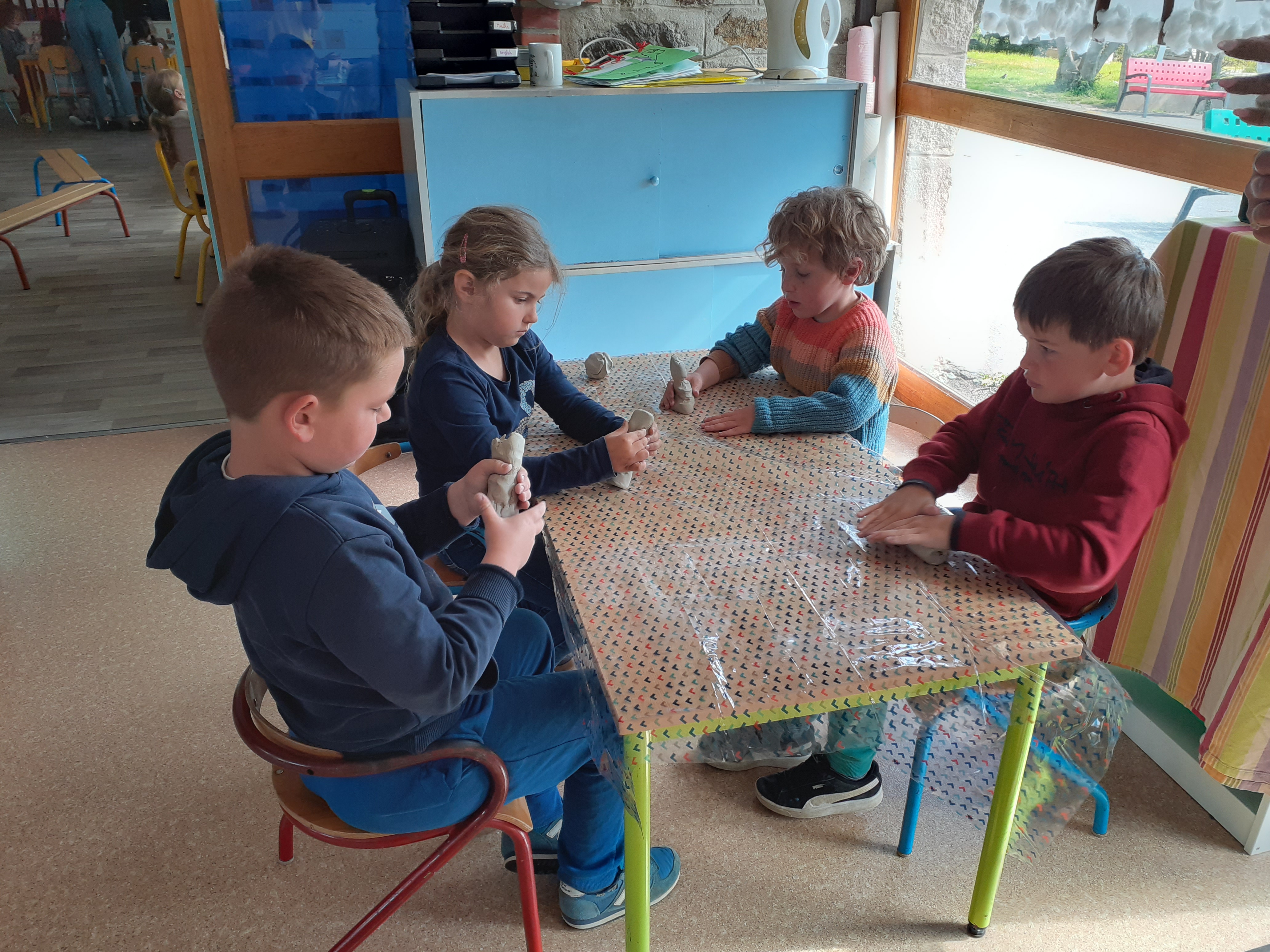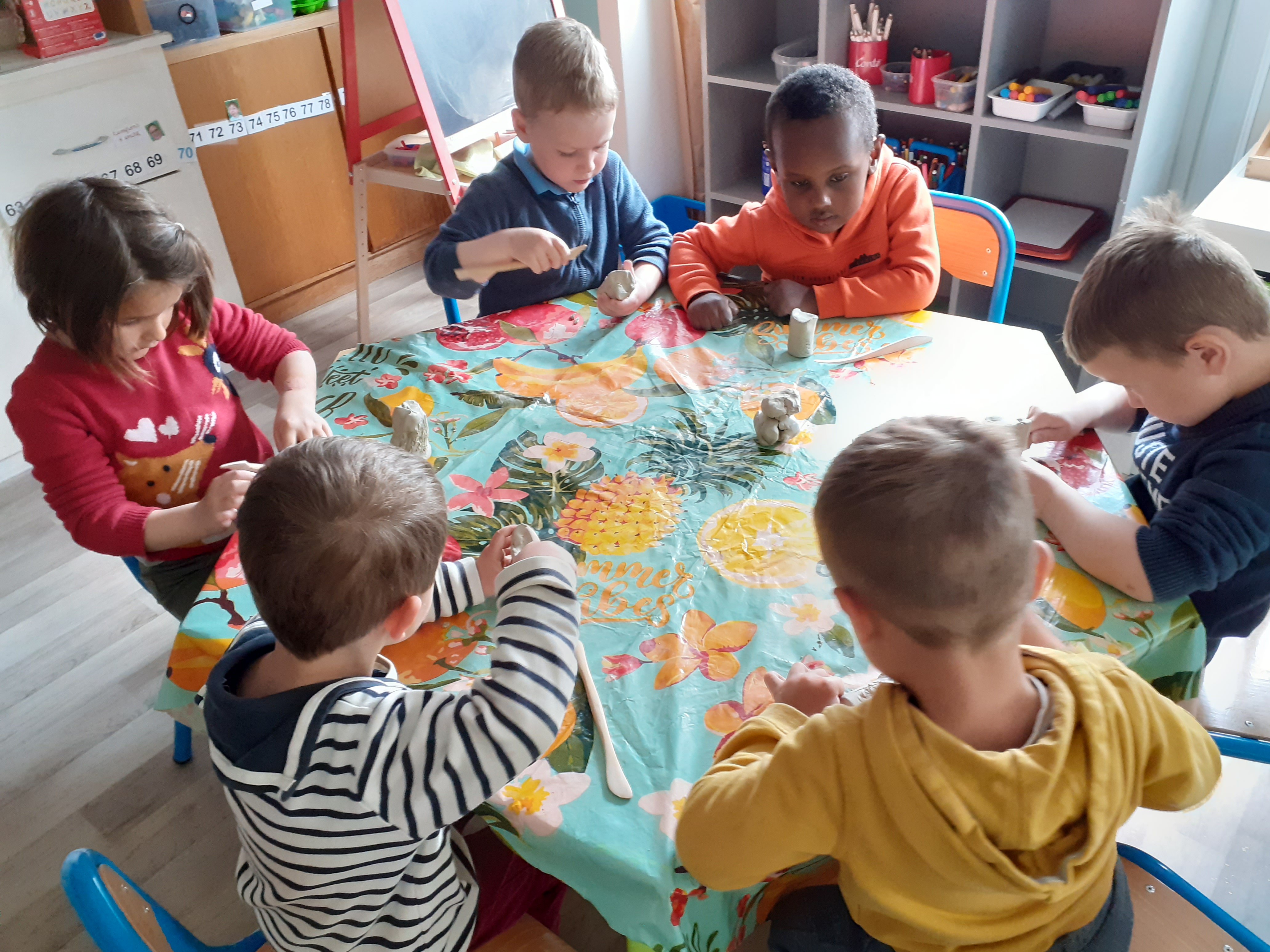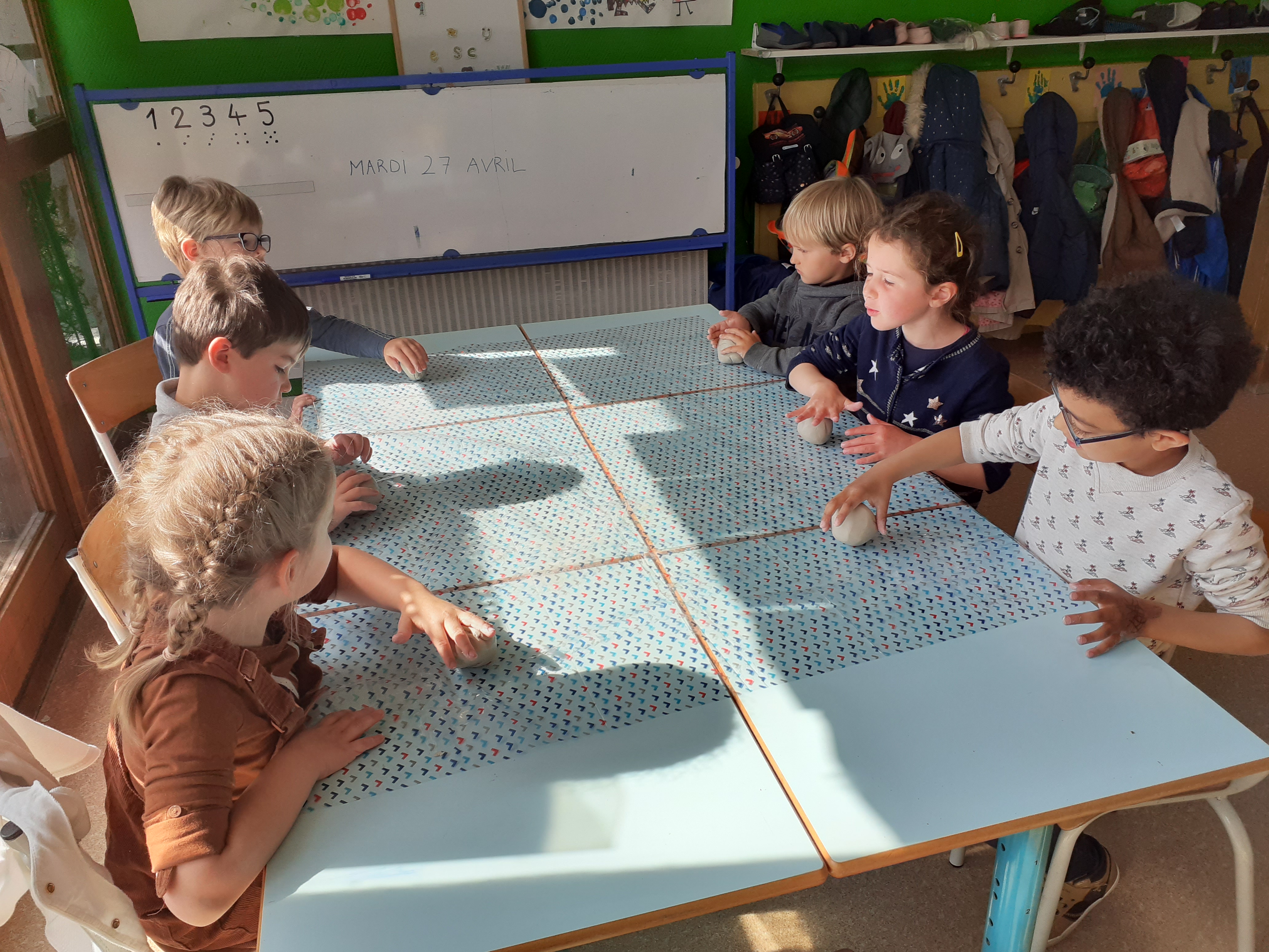 En mars, nous avons mené en classe de maternelle un cycle sur l'argile. Les enfants ont découvert cette matière et appris progressivement à la manipuler.