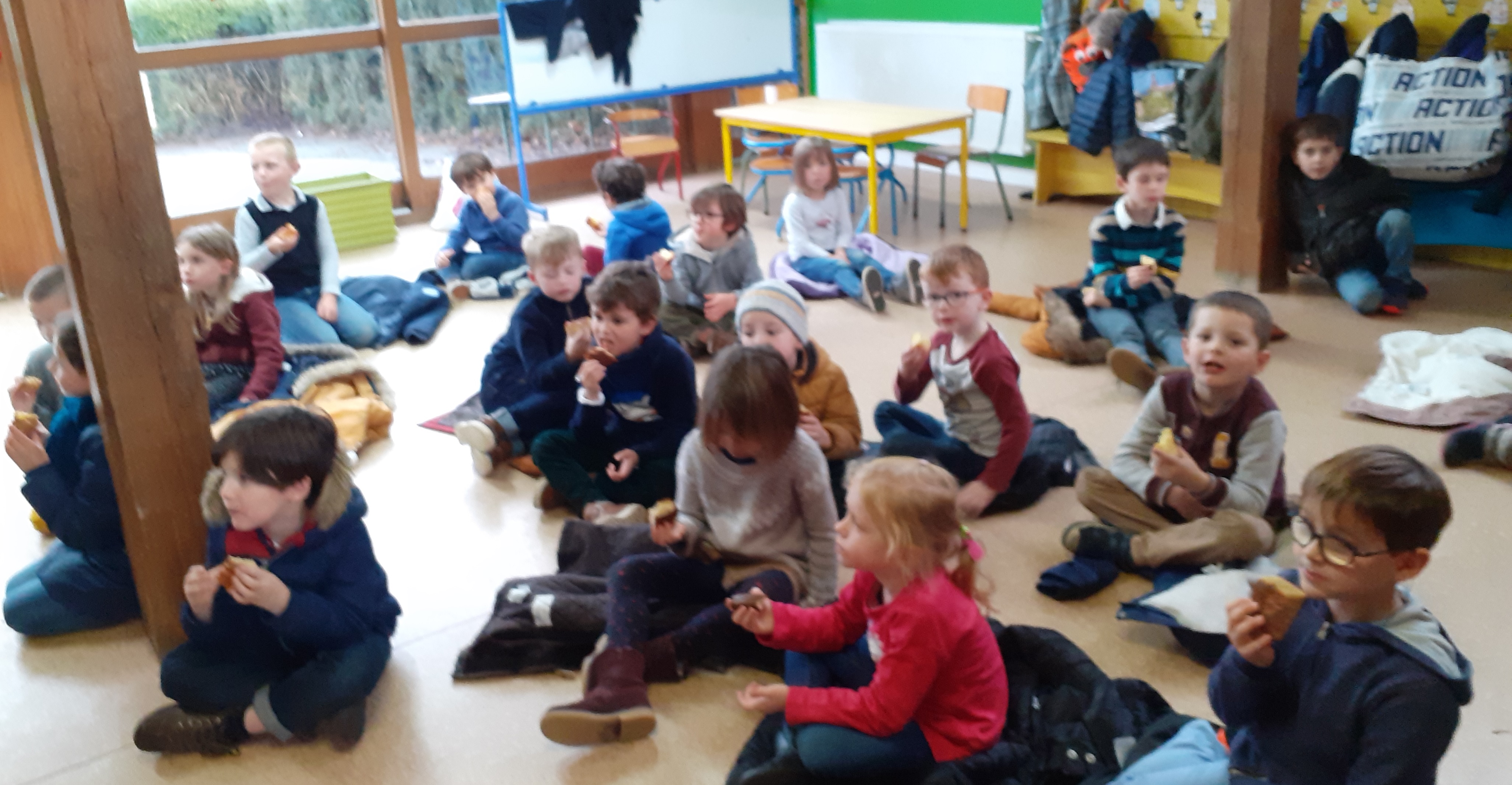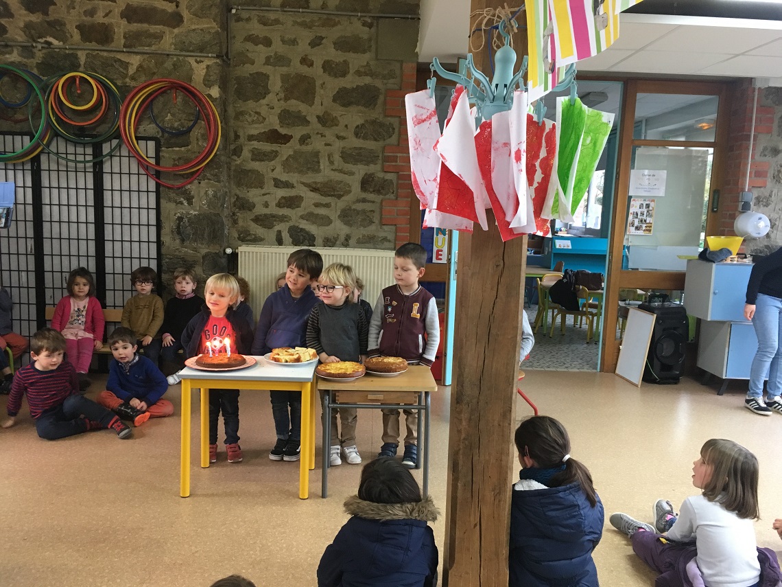Ce vendredi, nous avons fêté l'anniversaire de Raphaël et Zachary (4 ans) et de Arthur et Gabin (5 ans). La recette cette fois-ci était un gâteau au yaourt et aux pommes.